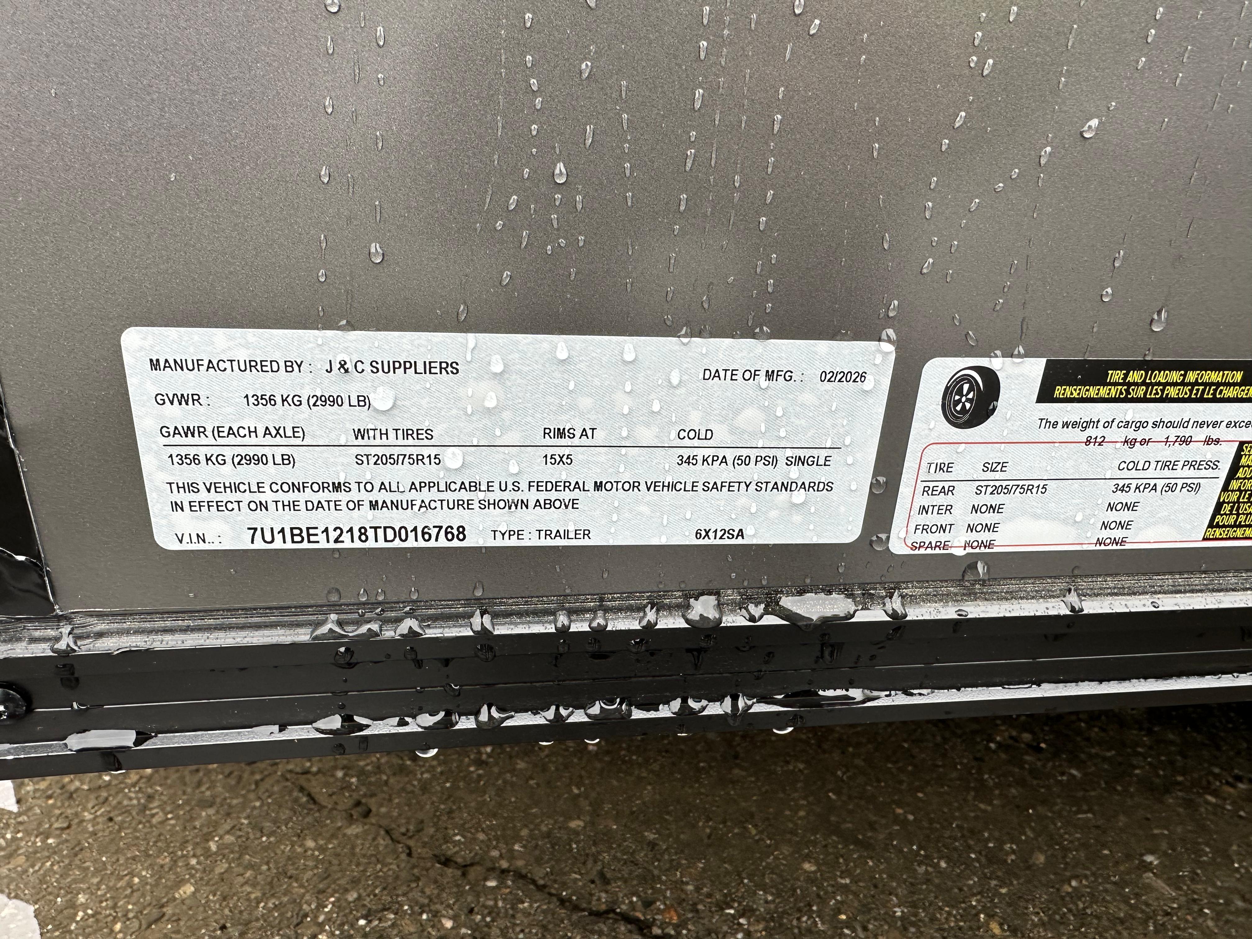Size: 6’ x 12’ Single Axle
