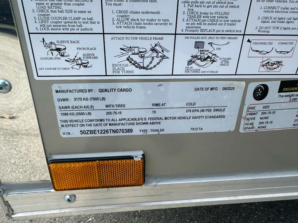 2026 Quality Cargo 7x12TA Enclosed Cargo Trailer – 9” Extra Height | D-Rings