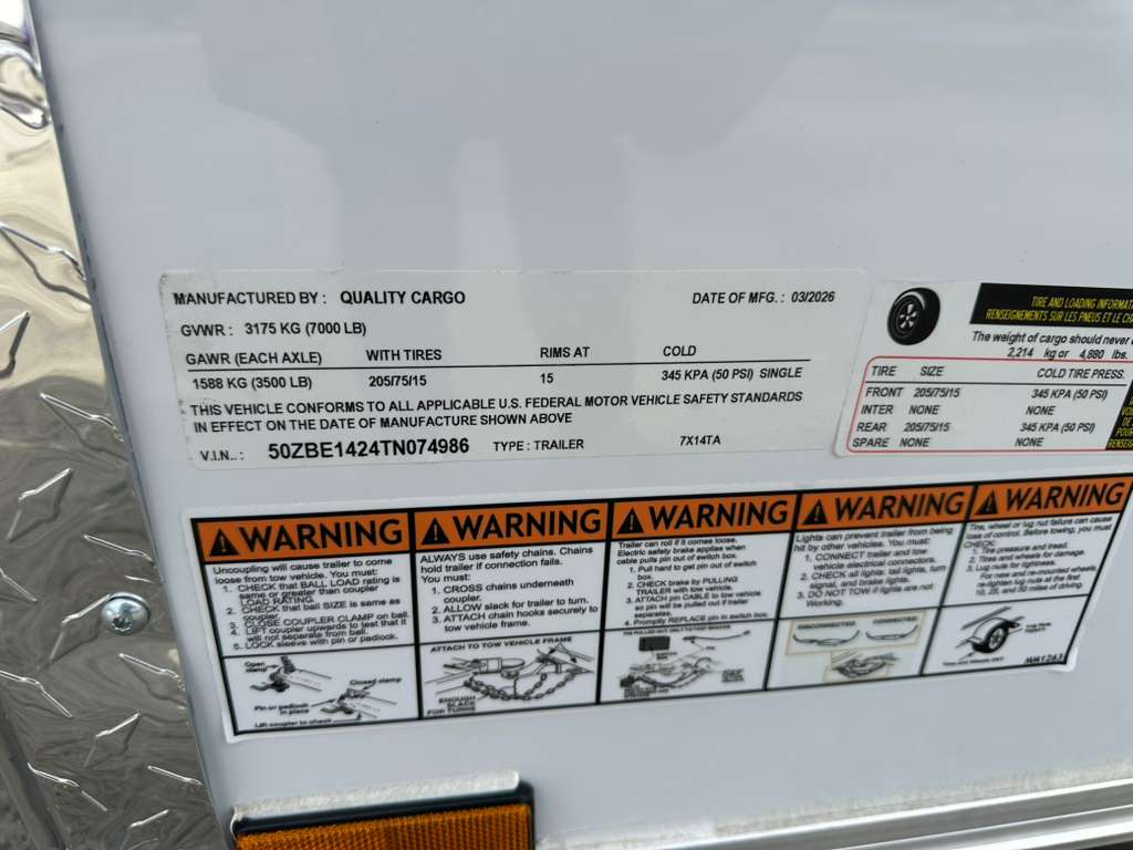 2026 Quality Cargo 7X14TA W/ 9" EXTRA HIGHT - TN074986