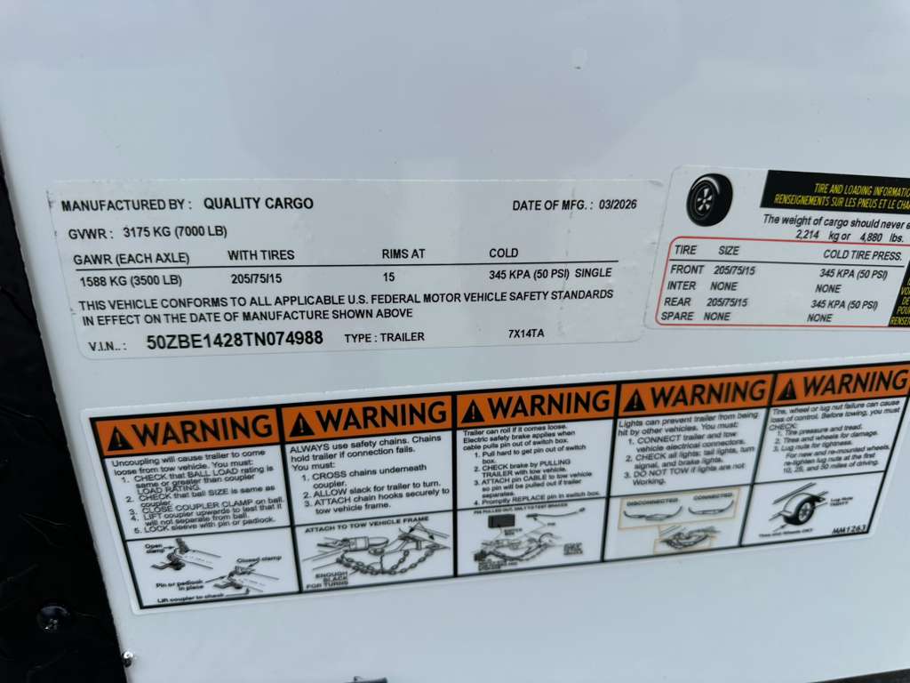 2026 Quality Cargo 7X14TA W/ 9" EXTRA HIGHT W/POLYCORE - TN074988