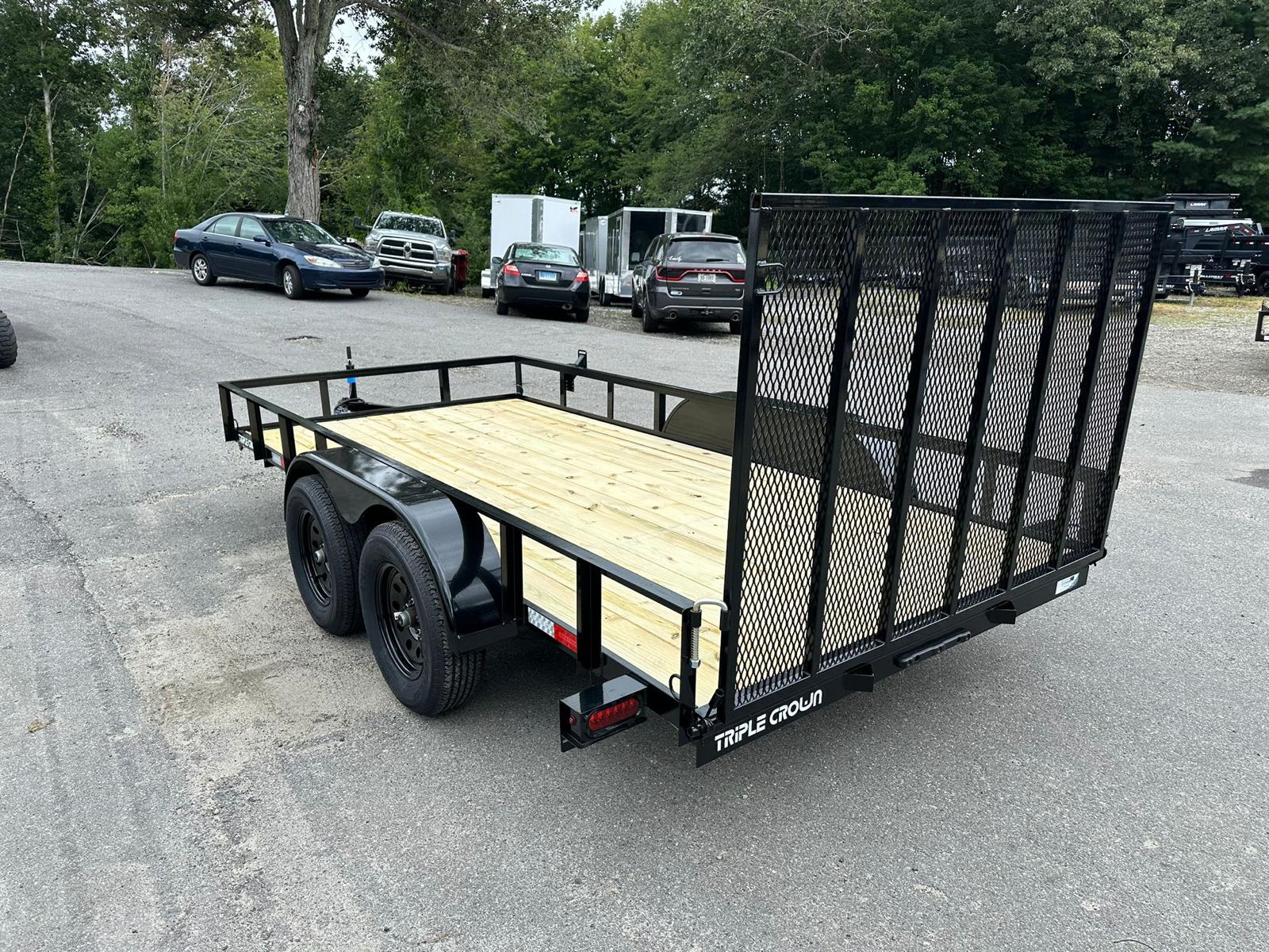 The Triple Crown DU6X14TG Deluxe Utility Trailer is engineered for heavy-duty hauling with tandem axles, a reinforced frame, and a sturdy gate to handle various loads. Perfect for landscapers, contractors, and homeowners, this trailer delivers durability and reliability.